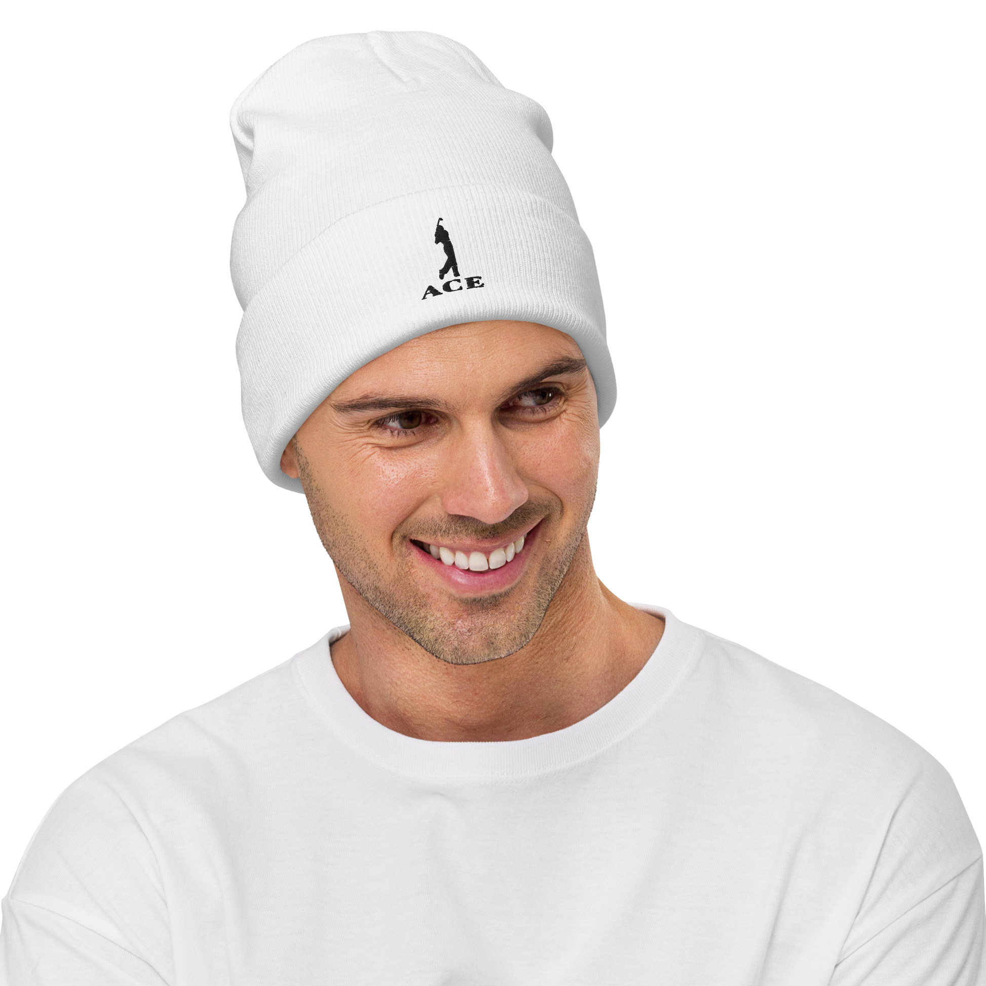 Ace Logo Embroidered Beanie/White